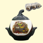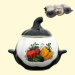 Backtopf Kürbis, weiß-braun mit Henkeln, 0,75 l, mit Gemüse-Dekor (Set mit 6 Töpfen)381260122 Ein solcher Tontopf ist eine wertvolle Bereicherung für jede Küche und eröffnet viele Möglichkeiten für kulinarische Experimente.