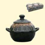 Backtopf Kürbis, weiß-braun mit Henkeln, 0,75 l, mit Wagen-Dekor (Set mit 6 Töpfen)381260146 Ein solcher Tontopf ist eine wertvolle Bereicherung für jede Küche und eröffnet viele Möglichkeiten für kulinarische Experimente.