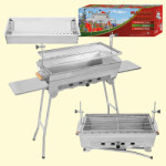 Mangal "President" mit klappbaren Füßen und Kohlebehälter (HLBT: 76,5x61x30x18,5cm) 0,8 mm, rostfrei89980003 Hohe Qualität, Edelstahl 0,8 mm, herausnehmbarer Auffangbehälter, klappbare Beine, Ablage zum Aufklappen, Grillgitter, leicht mitzunehmen, Grillspaß in der Natur oder Zuhause.Gewicht 8 kg