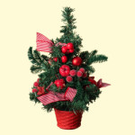 Künstlicher Tisch-Weihnachtsbaum Schneenäpfelchen, 29×16 cm898518604 Dieser 29 cm hohe Tisch-Weihnachtsbaum mit grünen Zweigen und roten Dekorationen im Stil des sowjetischen Neujahrsbarocks ist ein auffälliger Akzent für Ihre Festtagsdekoration.