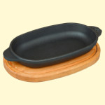 Gusseisen Servierpfanne, oval, mit Holzablage "Brizoll" H2214-D, 22 x 14 x 2,5 cm49472627 Gusseisen Servierpfanne 22 x 14 cm. H-2,5 cm