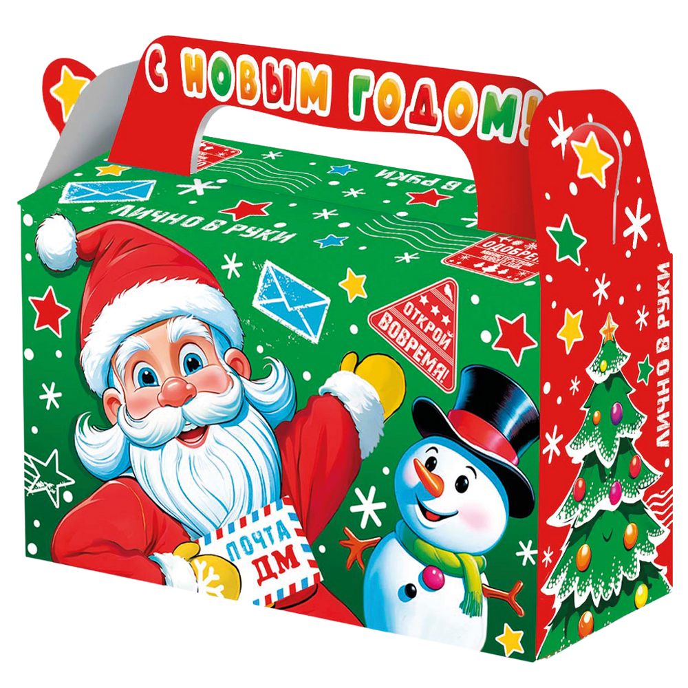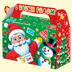 Weihnachtsverpackung Weihnachtsgeschenk, 500 g, Karton-Geschenkbox0705761082 Geschenkbox „Weihnachtsgeschenk“ zur Verpackung von Kinder-Weihnachtsleckereien, Pralinen, Souvenirs und Spielzeug. <br> Die Box ist selbstaufbauend mit einem Griff an der Oberseite, gefertigt aus Chromersatzkarton mit UV-Lack. <br> Farbdruck mit thematischem Weihnachtsmotiv von Väterchen Frost und Schneemädchen sowie festlichen Grüßen. <br> Innenvolumen der Verpackung — 500 g Süßwaren. <br><br> Kapazität: 500 g <br> Größe (L×B×H): 175×70×105 (140) mm <br> Länge: 175 mm <br> Breite: 70 mm <br> Höhe: 105 (140) mm |