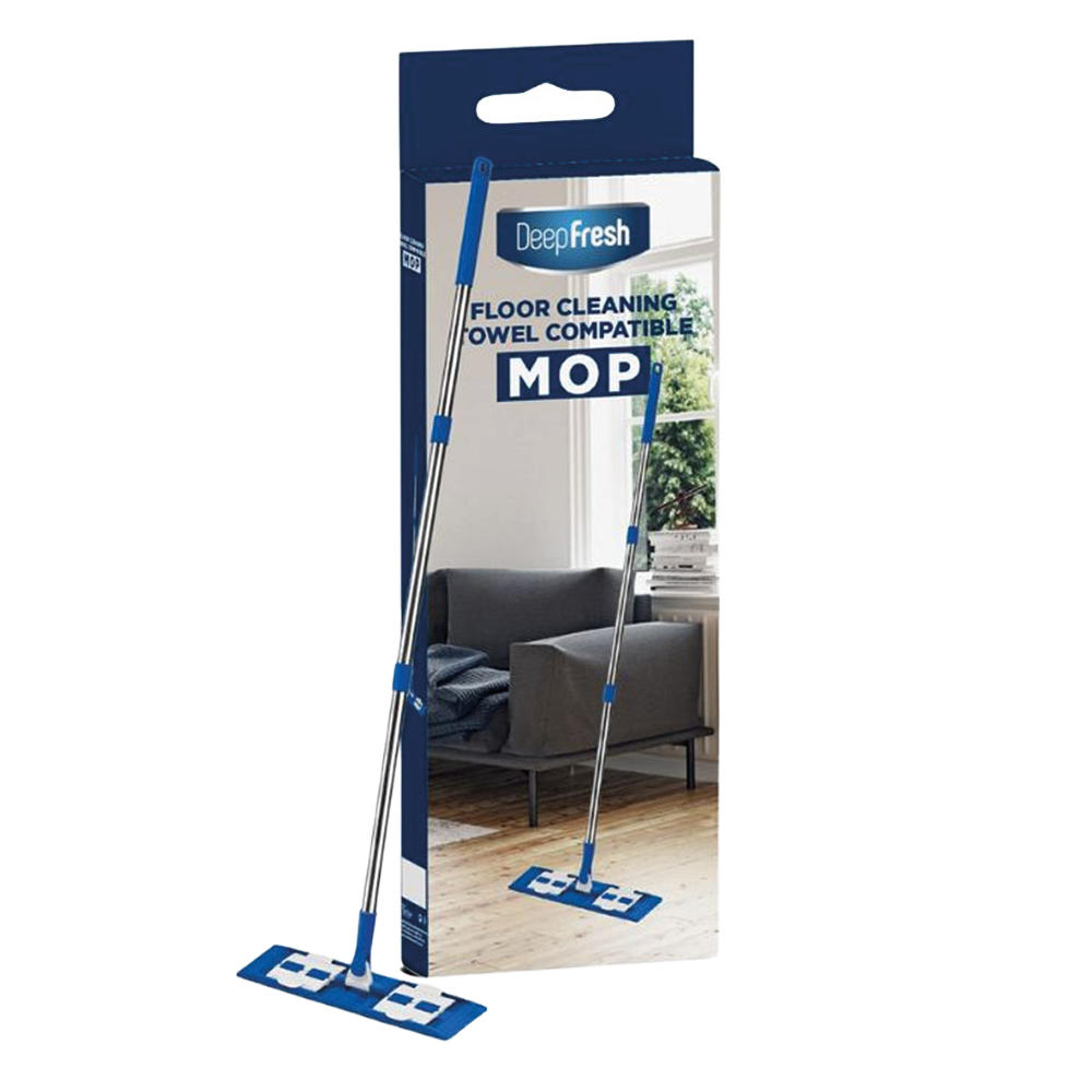 DEEP FRESH Wischmopp mit Befestigungssystem für Deep Fresh Feuchttücher, 1 Stück9991-475133320 Die perfekte Lösung für ein sauberes Zuhause – der Deep Fresh Wischer mit integriertem System zur Befestigung von Reinigungstüchern! Vergessen Sie schweres Schrubben und Mehrwegtücher! Dieser flache Bodenwischer mit Halterung für feuchte Tücher ist eine schnelle, hygienische und bequeme Möglichkeit, den Boden täglich sauber zu halten. Kompakt und platzsparend, ideal für den täglichen Gebrauch. Hergestellt aus robustem Kunststoff, die Griffgröße kann durch Zusammenbau aus 2 oder 3 Teilen angepasst werden. VORTEILE: Einfache Handhabung – Einweg-Tuch auflegen, befestigen und reinigen! Geeignet für viele Oberflächen – Parkett, Fliesen, Laminat usw. Universelle Größe – kompatibel mit vielen feuchten und trockenen Tüchern. Besonders empfohlen für die Verwendung mit Deep Fresh feuchten Bodentüchern. Einfach zu lagern und zu reinigen – kompakt, langlebig und in Sekundenschnelle einsatzbereit! Entdecken Sie, wie angenehm Bodenreinigung sein kann – schnell, mühelos und effektiv. Bestellen Sie jetzt und genießen Sie jeden Tag perfekte Sauberkeit! Packungsgröße: 12x41x6 cm Im Lieferumfang: 4 Teile. Wischergröße: 35x10,5 cm Grifflänge: 80 oder 110 cm Hersteller-Angaben, Warnhinweise und Sicherheitsinformationen Hersteller: Olymp Handels GmbH Olymp Handels GmbH Adresse: Auf der Höhe 24, 47059 Duisburg Email: info@olymp48.de |