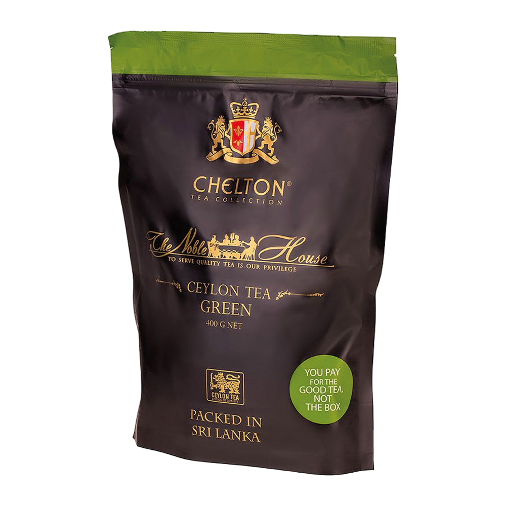 Chelton The Noble House – Ceylon Green Tea, loser grüner Tee, 400 g Zipp9401-75-400z Hochwertiger, großblättriger 100 % handverlesener grüner Ceylon-Tee aus der Provinz Kandy auf Sri Lanka.<br><br> Zusammensetzung:<br> 100 % grüner Ceylon-Tee<br> 400 g loser Tee im Aromaschutzbeutel mit Zippverschluss |
