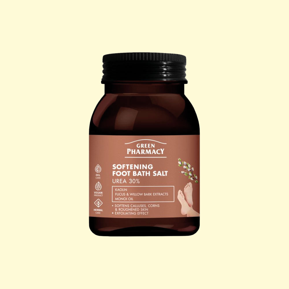 Green Pharmacy Fußbad-Salz mit 30% Harnstoff – weichmachend, 400 g9991-475147049 Fußbad-Salz mit 30% Harnstoff ist ideal zur Pflege trockener und verhärteter Haut an den Füßen.<br> Harnstoff spendet intensive Feuchtigkeit, macht die Haut weich, fördert die Regeneration und verbessert die Elastizität.<br> Regelmäßige Anwendung lindert Müdigkeit und Unbehagen, macht die Füße weich und gepflegt.<br> Anwendung: Das Salz in warmem Wasser auflösen und die Füße 10–15 Minuten darin baden.<br> Gewicht: 400 g.<br> |