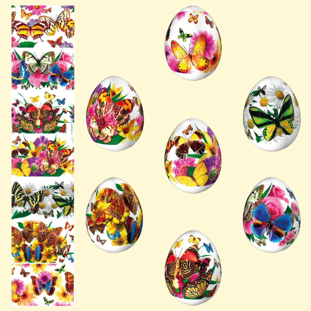 Oster-Dekorbanderolen Schmetterlinge 7 verschiedene Motive im Set38120063-53 Die Oster-Dekorbanderolen „Schmetterlinge“ eignen sich ideal zur Dekoration von Ostereiern. Das Set enthält 7 verschiedene Motive mit zarten Schmetterlingsdesigns. Die Anwendung ist einfach: Die Banderole wird mit heißem Wasser fixiert und passt sich perfekt dem Ei an. Geeignet für handelsübliche Hühnereier. |