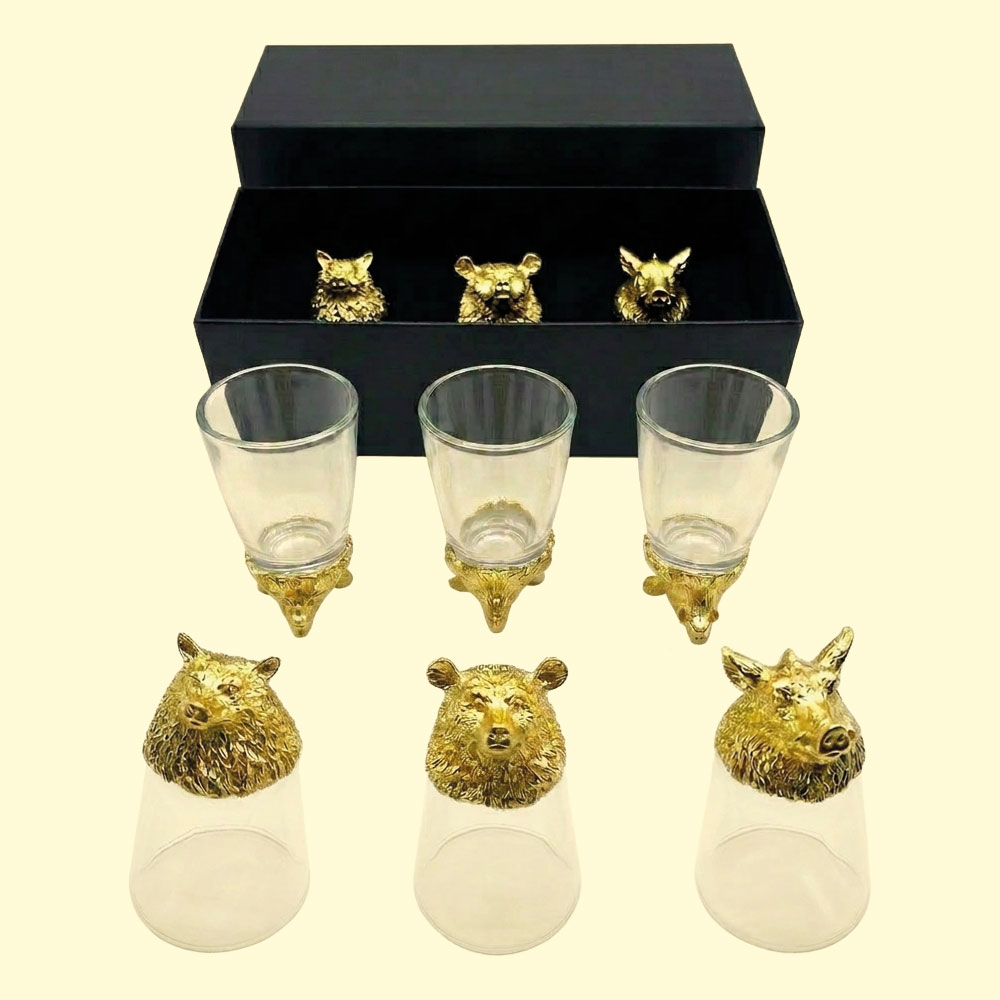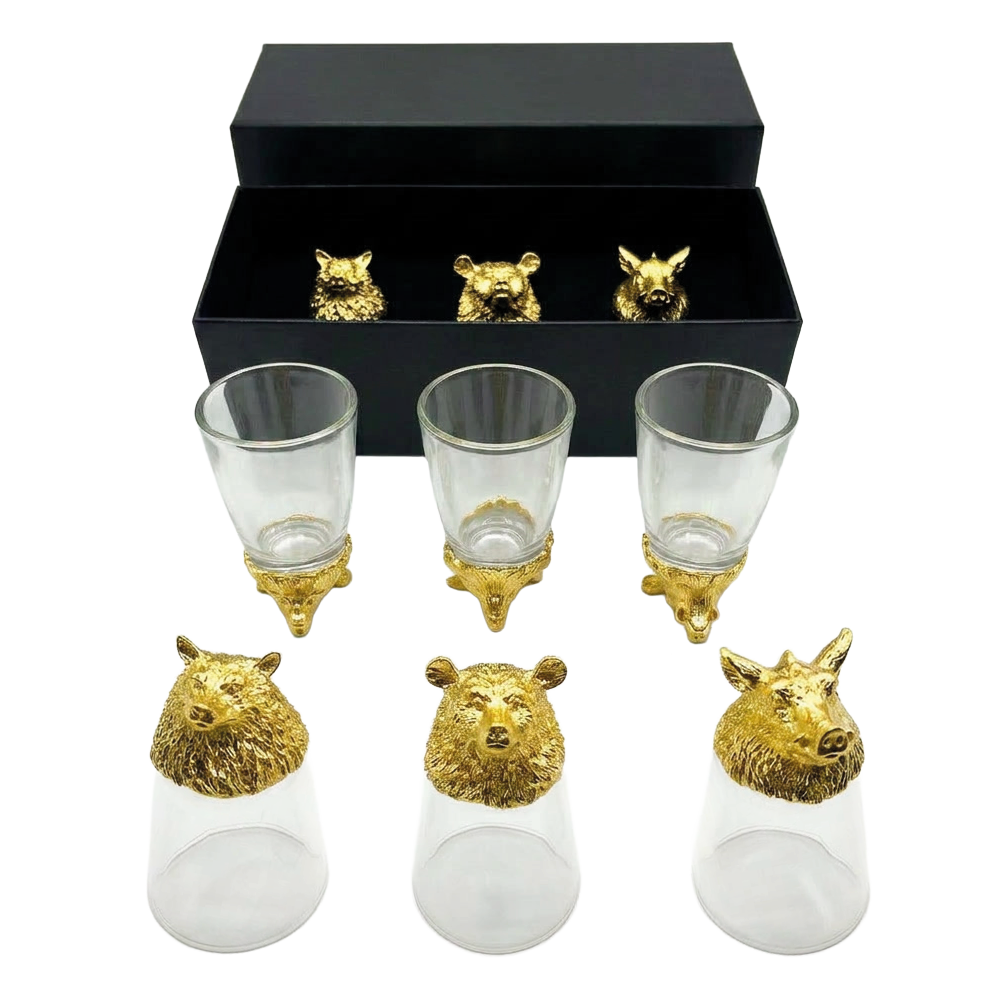 Geschenkset Wildtiere, Flip-Schnapsgläser 3 Stk. je 30 ml (Wolf, Wildschwein, Bär), goldfarben898520328 Geschenkset Wildtiere — ein stilvolles und originelles Geschenk für jeden Anlass. Die Flip-Schnapsgläser mit detailreichen Tierköpfen von Wolf, Wildschwein und Bär in goldfarbener Ausführung verleihen dem Set eine luxuriöse und auffällige Optik. Das Set enthält 3 Gläser mit je 30 ml Volumen, die eine besondere Atmosphäre schaffen. Ideal für gesellige Runden und festliche Anlässe. Die Kombination aus Glas und Metall sorgt für Stabilität, Langlebigkeit und eine hochwertige Erscheinung. Die Gläser sind standfest und leicht zu reinigen. Ein perfektes Geschenk zu Weihnachten, Geburtstag, Jubiläum oder anderen besonderen Anlässen für Freunde, Familie und Kollegen. Bringen Sie Stil und Atmosphäre auf jeden Tisch! Hersteller-Angaben, Warnhinweise und Sicherheitsinformationen Hersteller: Olymp Handels GmbH Olymp Handels GmbH Adresse: Auf der Höhe 24, 47059 Duisburg Email: info@olymp48.de |