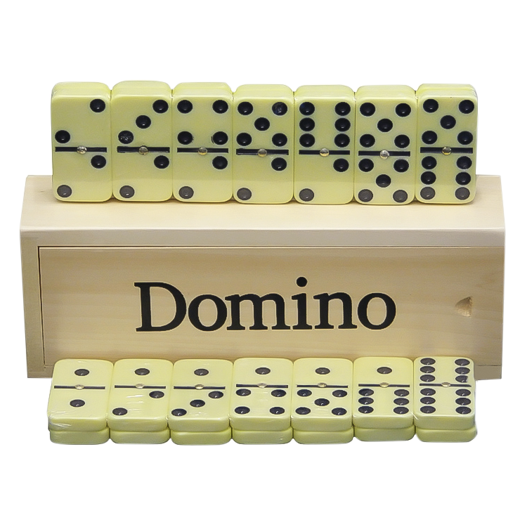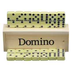 Domino gross, 4,8 x 2,3 cm, Box 19 x 7 х 4 cm89256809 Domino ist ein Legespiel mit 28 rechteckigen Spielsteinen aus Kunststoff. Im Holzetui verpackt. Spielsteine: 4,8 x 2,3 cm. Holzetui: 19 x 7 x 4 cm |