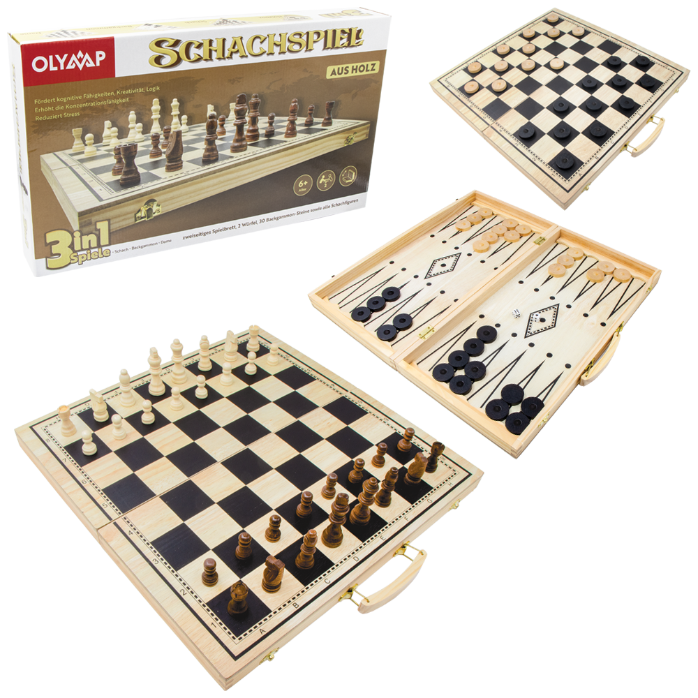 Schach-, Damen- & Backgammonspiel(Nardy), massives Holz, Spielbrett 40 х 40 см89251026 Die äußere Oberfläche des Bretts ist ein Spielfeld für Schach und Damen, das Innere ist zum Spielen von Backgammon. Figuren von Schach, Damen- und Backgammonspiel werden innerhalb des zusammengeklappten Brettes bewahrt. Schach, Damen- und Backgammon lehrt zu denken, aufmerksam zu sein, zu erinnern, zu vergleichen, zu verallgemeinern und die Ergebnisse deiner Aktivitäten vorwegzunehmen. Brett 40 x 40 cm |