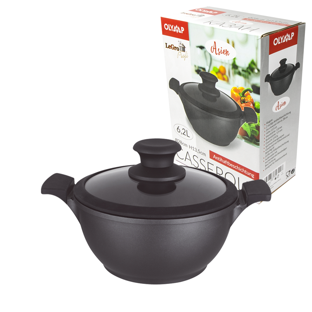 Casserole "Asien" 6,2 L898082340 Der Kessel mit hitzebeständigem Glasdeckel ist aus hochwertigen Materialen und auf Basis modernster Technologien hergestellt worden. Die spezielle Zwei-Schicht- Antihaftbeschichtung gegen Anbrennen dient dem leichten Zubereiten von Speisen ohne Verwendung von Fett und Butter, was Ihre Küche leichter und gesunder macht. Der Kessel ist gut geeignet um Kartoffeln zu kochen, Reis und Nudeln zuzubereiten, Fleisch und Gemüse zu dünsten sowie zahlreiche Lebensmittel anzubraten. Die Zubereitung von “Plow” gelingt mit diesem Kessel besonders gut. Die besondere Form und die Materialen, mit denen der Kessel produziert wurde, dienen dem schnellen gleichmässigen Erhitzen der Oberfläche und machen es möglich auch metallisches Küchenwerkzeug einzusetzen. Geeignet für Gasherd, Elektrischen Herd, Keramikherd, Induktionsherd. Breite / Höhe 28 х13,5 сm. Die Wandstärke 1,8 mm. Die Bodenstärke 5,5 mm. Gewicht 1243 g. Der Kessel ist sowohl von Hand waschen als auch zum Waschen in der Spülmaschine geeignet. |