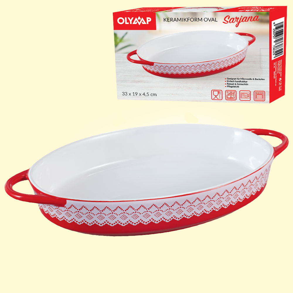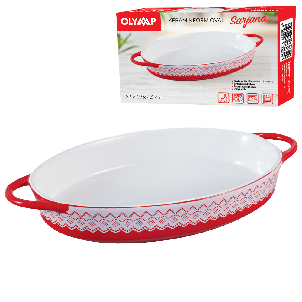 Auflaufform aus Keramik "Sarjana" oval, rot, 33 x 19 x 4,5 cm89431247 Verpackungsgröße: 21 x 33 x 5,5 cm <br> Gewicht: ca. 1,1 kg |