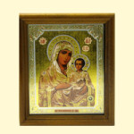 Икона "Иерусалимская" 13x15 см, деревянная рама, двойное тиснение00-042-024_3 Иерусалимская икона Божьей Матери – образ Богородицы, перед которым молятся в случаях, когда происходят события, повергающие нас в уныние, скорбь. Икона считается целительной. Известны многие случаи избавления от различных…