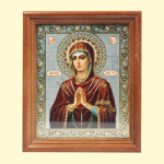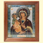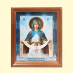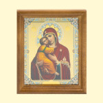 Икона "Помощница в родах" 13x15 см, деревянная рама,двойное тиснение, под стеклом00-080-020_34 С незапамятных времен в минуты жесточайших страданий при рождении детей, когда смерть так близка, женщины прибегают с особенно горячей молитвой к Спасителю и Пречистой Его Матери. В благочестивых семействах и в наше время…