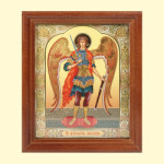 Икона "Архангел Михаил" 13x15 см, деревянная рама, двойное тиснение,под стеклом00-086-020_18 Архангел Михаил считается покровителем воинов. Является защитником всех православных христиан от видимых и невидимых врагов и злых духов. Крепка вера православных христиан в его помощь во всех бедах, скорбях, нуждах. К…