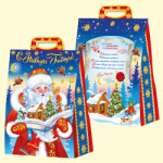 Новогодняя упаковка Презент, 800 г, картонная подарочная коробка0705761129 Картонная подарочная коробка «Презент» для упаковки детских новогодних подарков, шоколадных конфет, сувениров.