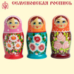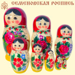 Матрёшка Семёновская M5 11 см07074006-M5 H = 19см Количество кукол - 8 Материал: дерево (берёза, липа), анилин, гуашь, лак.