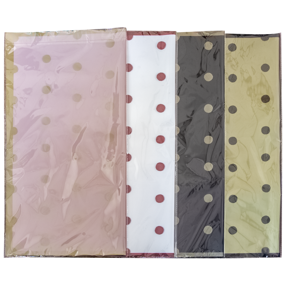 Пленка матовая 57 x 57 см 20 листов для декора и флористики898502008 Плёнка в листах 57*57 (20 шт.) матовая с золотым или красным краем и горохом |
