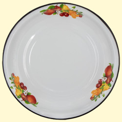 Блюдо круглое эмалированное ∅50 см Фруктовый рай 7 л478253407 Блюдо – очень распространенный предмет столовой посуды, используемый практически в каждом хозяйстве. Ни для кого не секрет, что первые блюда были выполнены из плоского камня, наши предки выбивали плоские камни, на которые можно было положить еду. Чуть позже изделия изготавливались из дерева или глины. Сегодня эти изделия могут быть выполнены не только из дерева, но и из керамики, фарфора, стекла, хрусталя, фаянса или из эмалированной стали. Их можно использовать для любых целей, в зависимости от материала изготовления и размера посуды. На этом блюде вы можете сервировать так полюбившиеся нам бешбармак, лагман. Блюдо вместимостью 2,5 л. Двойной слой эмалевого покрытия. Толщина металла 0,8 мм. Диаметр: 360 мм Высота: 51 мм |