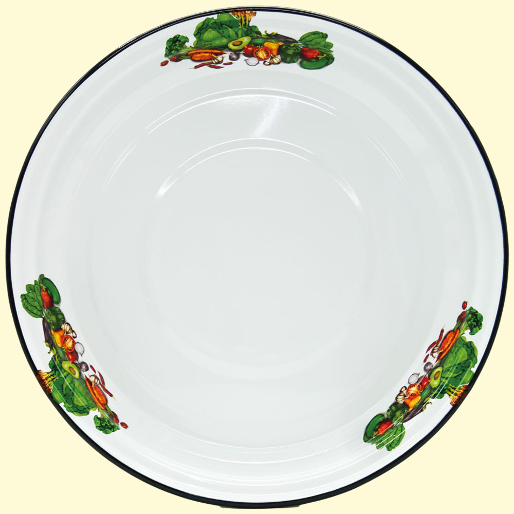 Блюдо круглое эмалированное ∅50 см Овощи, 7 л478253414 Блюдо – очень распространенный предмет столовой посуды, используемый практически в каждом хозяйстве. Ни для кого не секрет, что первые блюда были выполнены из плоского камня, наши предки выбивали плоские камни, на которые можно было положить еду. Чуть позже изделия изготавливались из дерева или глины. Сегодня эти изделия могут быть выполнены не только из дерева, но и из керамики, фарфора, стекла, хрусталя, фаянса или из эмалированной стали. Их можно использовать для любых целей, в зависимости от материала изготовления и размера посуды. На этом блюде вы можете сервировать так полюбившиеся нам бешбармак, лагман. Блюдо вместимостью 2,5 л. Двойной слой эмалевого покрытия. Толщина металла 0,8 мм. Диаметр: 360 мм Высота: 51 мм |