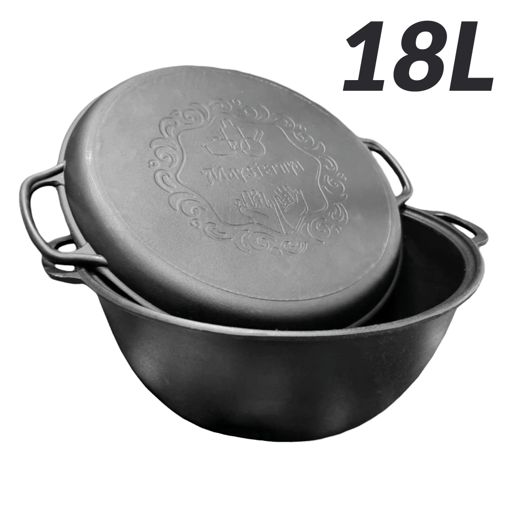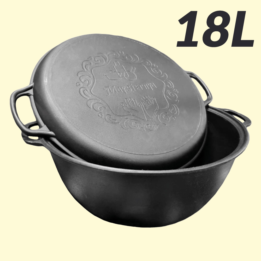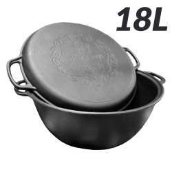 Чугунный узбекский WOK казан 18 литров с крышкой-сковородой-гриль381700-V18CP WOK казан, изготовленный из чугуна Крышка из чугуна, которую можно использовать вместо сковороды-гриль Диаметр: 40 см Высота: 18 см Объем: 18 л Вес: 14,32 кг Подходит для всех типов плит: газовых, керамических, индукционных, электрических. Подходит для Камадо. Отличный выбор для готовки на природе. |