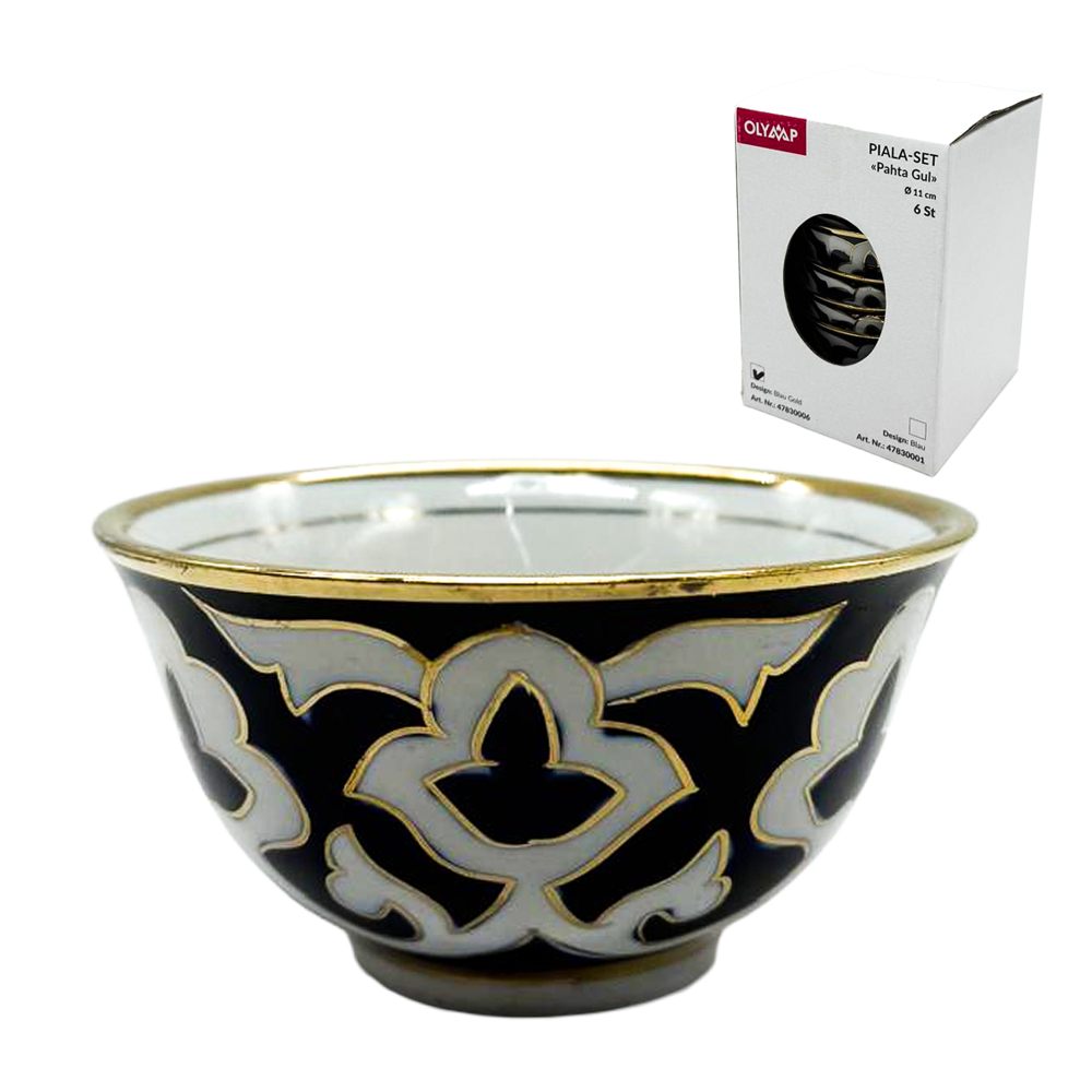 Набор пиал Пахта Гул 6 шт, белый-синий-золото, Узбекистан, Ø 11 см47830006 Набор пиал "Пахта Гул" — изысканная узбекская посуда в бело-синем цвете с золотым декором. Идеально подходит для подачи чая, соусов, орехов, варенья и других блюд. Ручная работа и роспись мастеров из Узбекистана. Каждое изделие уникально, возможны незначительные отклонения по цвету и узору. Экологически безопасны и подходят для домашнего и коммерческого использования. В наборе 6 пиал. Диаметр: 11 см. |