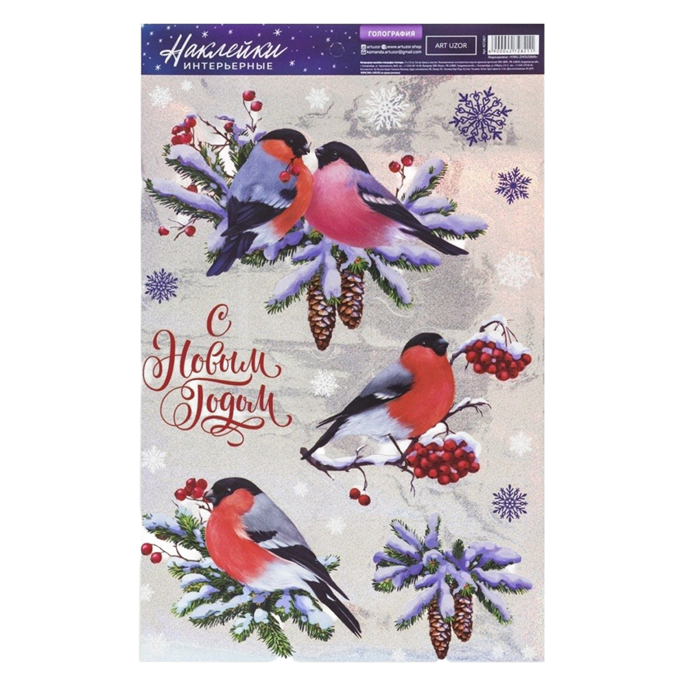 Наклейки интерьерные 2 шт, Снегири, голографические, 21 × 29,5 см898598455 Создайте праздничное настроение с помощью ярких интерьерных наклеек!<br> Они легко крепятся на стекло, зеркало или другие гладкие поверхности и помогут быстро украсить дом или офис к Новому году.<br> Голографический эффект делает изображения особенно нарядными и праздничными.<br> Особенности:<br> • Размер листа: 21 × 29,5 см<br> • Материал: самоклеящаяся плёнка с голографическим покрытием<br> • Дизайн: снегири, еловые ветки, шишки, ягоды, надпись «С Новым годом!»<br> Такие наклейки станут стильным украшением интерьера и создадут атмосферу настоящей зимней сказки! |
