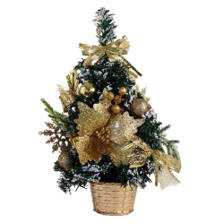 Искусственная ёлка настольная Зимнее волшебство. Праздничная, 15×29 см, ветки отгибаются, золотой898507101 Настольная ёлка «Праздничная» — это компактный и яркий акцент для новогоднего убранства.<br> Искусственная ёлка высотой 29 см выполнена из ПВХ-веток с отгибающимися креплениями, дополнена декором в виде бантиков, цветов и шаров золотого цвета — украшение в стиле ар-деко и новогоднего барокко для дома, офиса или детской комнаты.<br> Подходит тем, кто ценит свет, объём и зимнюю атмосферу в мини-формате.<br><br> Особенности:<br> • Тип: настольная ёлка<br> • Размер: 15 × 29 см<br> • Материал: ПВХ<br> • Ветки гнутся и легко расправляются<br> • Декор: золотые шары, бантики, цветы<br> • Стиль: ар-деко, барокко, фьюжн<br><br> Праздник начинается с одного золотого акцента!<br> Эта ёлка не требует много места, чтобы создать настроение торжества. Зелёная хвоя и золотой декор создают атмосферу Нового года, уюта и ожидания подарков. Используйте как самостоятельное украшение или как часть общей композиции. |