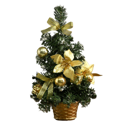 Настольная ёлка с отгибающимися ПВХ ветками и золотистой пуансетией станет стильным дополнением новогоднего интерьера, привнося в него атмосферу уюта и праздника.<br> Высота ёлки — 30 см, диаметр нижнего яруса — 13 см, что обеспечивает компактность и удобство размещения на любой поверхности.<br> Эта мини-ёлка идеально впишется в интерьер дома, офиса или станет замечательным подарком.<br><br> Особенности:<br> • Отгибающиеся ПВХ ветки формируют естественный объём и позволяют придать ёлке желаемую форму.<br> • Зелёная хвоя гармонирует с золотистой пуансетией и украшениями, создавая элегантный вид.<br> • Компактные размеры: 30 см высота, 13 см диаметр нижнего яруса.<br> • Микс стилей: классика, ар-деко, скандинавский стиль и шебби-шик.<br> • Прочные и лёгкие материалы — удобны в уходе и долговечны.<br><br> Праздничное настроение:<br> Мини-ёлка создаёт атмосферу тепла и радости, идеально подходит для дома, офиса или в подарок.<br> Пусть она станет частью ваших зимних традиций и добавит нотки волшебства в праздничный интерьер.