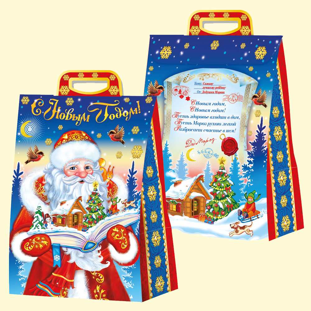 Новогодняя упаковка Новый Год, 2000 г, картонная подарочная коробка0705761143 Картонная коробка "Новый Год" для упаковки детских новогодних подарков, шоколадных конфет, сувениров, игрушек. <br> Коробка самосборная с ручкой в верхней части, изготовлена из хромэрзац картона с применением УФ-лакирования. <br> Цветная печать с тематическим новогодним изображением Деда Мороза и Снегурочки. <br> Внутренняя вместимость упаковки — 2000 г кондитерских изделий. <br><br> Размеры: 230×100×330 (375) мм <br> Длина: 230 мм <br> Ширина: 100 мм <br> Высота: 330 (375) мм |