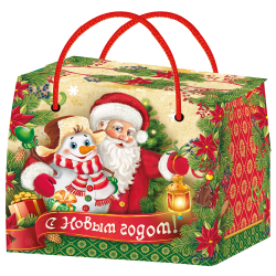 Новогодняя упаковка Презент, 800 г, картонная подарочная коробка0705761129 Картонная подарочная коробка «Презент» для упаковки детских новогодних подарков, шоколадных конфет, сувениров. <br> Коробка самосборная, выполнена из хромэрзац картона с применением воднодисперсионного лака (ВД-лак). <br> Оснащена двумя веревочными ручками. <br> Цветная печать с тематическим изображением новогодних сюжетов и надписью «С Новым Годом!». <br> Внутренняя вместимость упаковки — 800 г кондитерских изделий. <br><br> Вместимость: 800 г <br> Размер: 170×120×140 мм <br> Длина: 170 мм <br> Ширина: 120 мм <br> Высота: 140 мм |