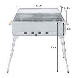 Мангал ПИКНИК новый, ВДШ: 80 x 60 x 33 см, нержавейка 0,8 мм.899860269 Со снимающейся полочкой, ножки и решётка не являются нержавейкой.<br> Гриль-мангал "Пикник"– многофункциональное и удобное устройство для приготовления ароматных блюд. <br> Весьма просторная рабочая поверхность позволяет работать сразу с несколькими блюдами (или же с большой порцией одного блюда. <br> Мобильный гриль вы сможете легко собрать и разобрать, а хранить его можно в сложенном виде – ведь в таком положении гриль занимает очень мало места. <br><br> Технические данные: <br> Площадь грильной поверхности (Д × Ш): 60 × 33 см <br> Размеры собранного гриля (В × Д × Ш): 80 × 60 × 33 см <br> Площадь полочки (Д × Ш): 60 × 33 см — 1 шт. <br> Размеры собранного гриля с полочками (В × Д × Ш): 80 × 60 × 66 см <br> Материал: нержавеющая сталь 0,8 мм <br> |