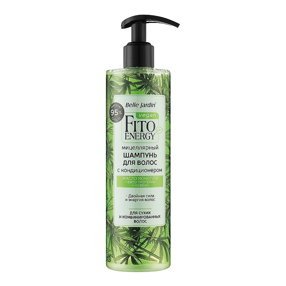 Belle Jardin Мицеллярный шампунь с кондиционером – масло конопли, фито-протеины и кофеин, 400 мл9991-475108258 Мицеллярный шампунь с кондиционером для сухих и комбинированных волос<br><br> Веганские шампуни Fito Energy концентрируют энергию растительных экстрактов, протеинов и масел.<br> Синергия натуральных ингредиентов наполняет волосы силой и энергией, обеспечивая необходимое увлажнение и интенсивное питание.<br> Этот мицеллярный шампунь эффективно очищает волосы, восстанавливая их здоровый вид.<br><br> Применение: Нанесите необходимое количество шампуня на влажные волосы и равномерно распределите по всей длине мягкими массажными движениями.<br> Тщательно смойте водой. |