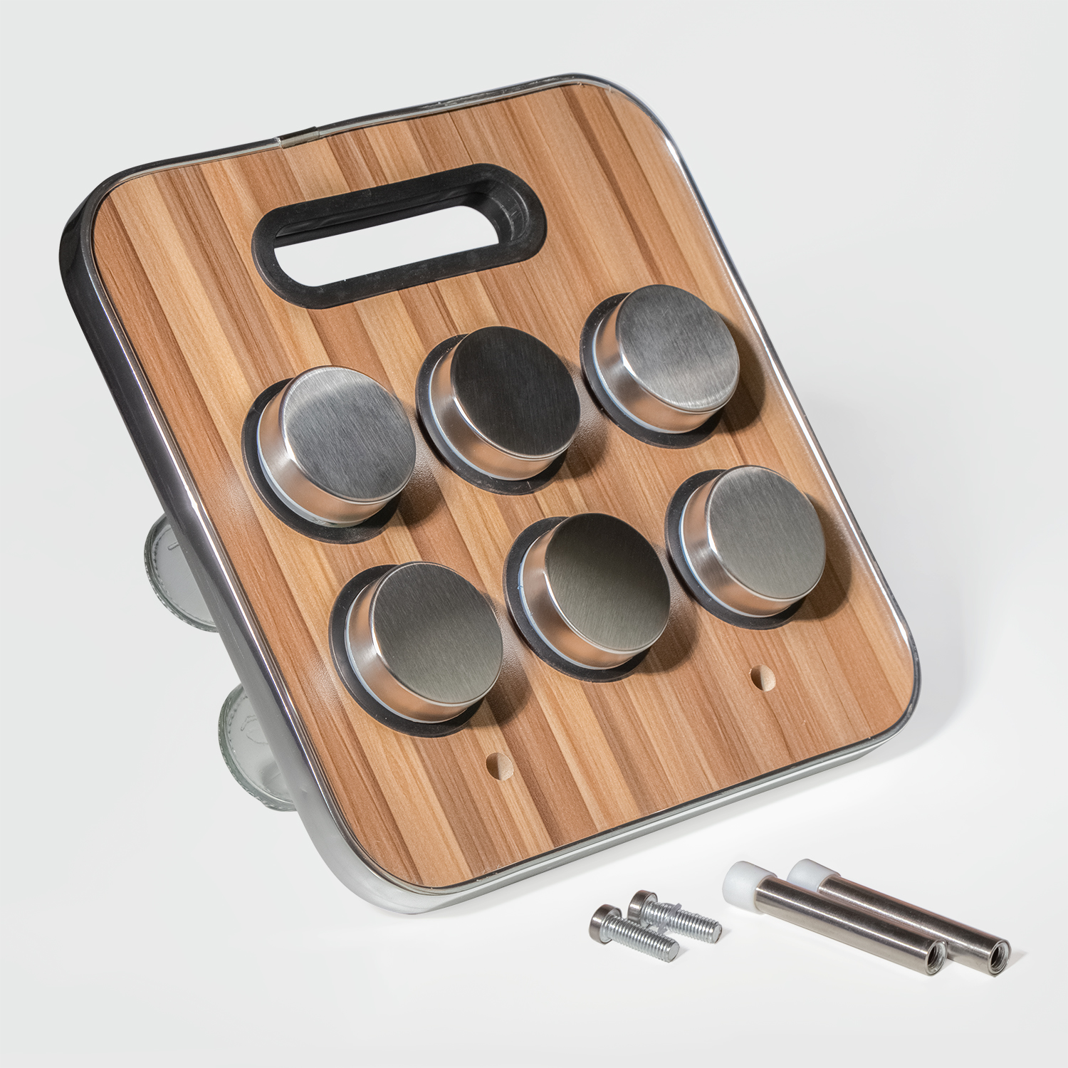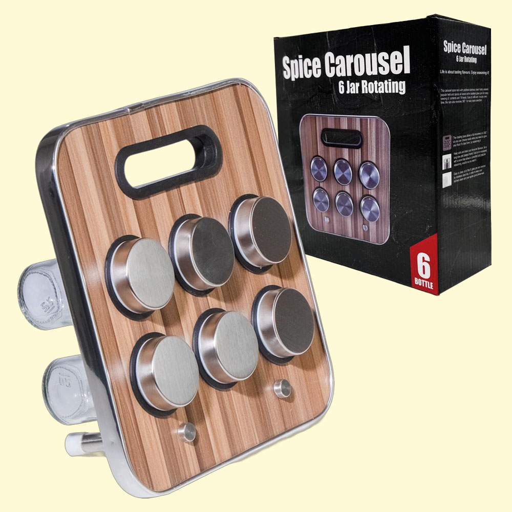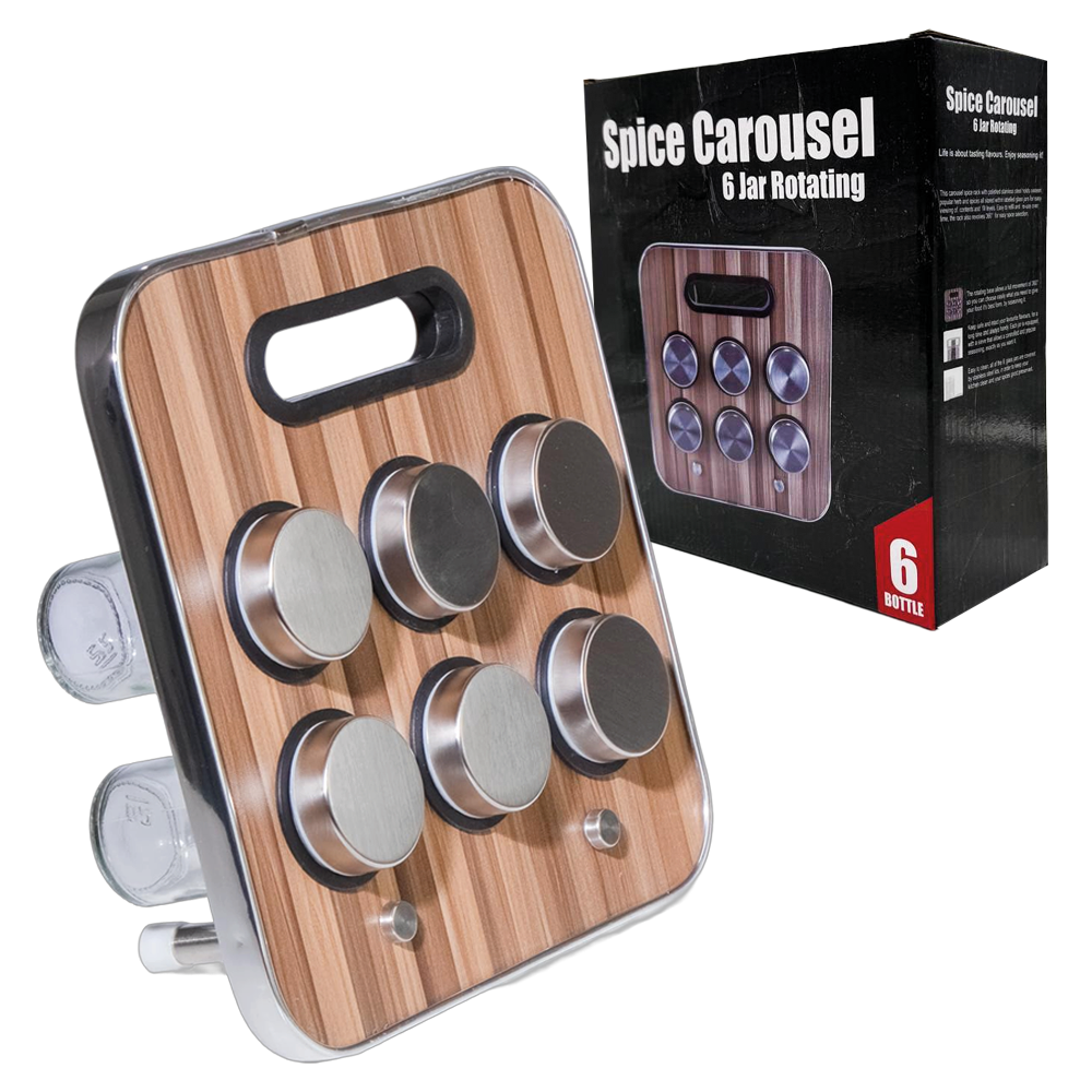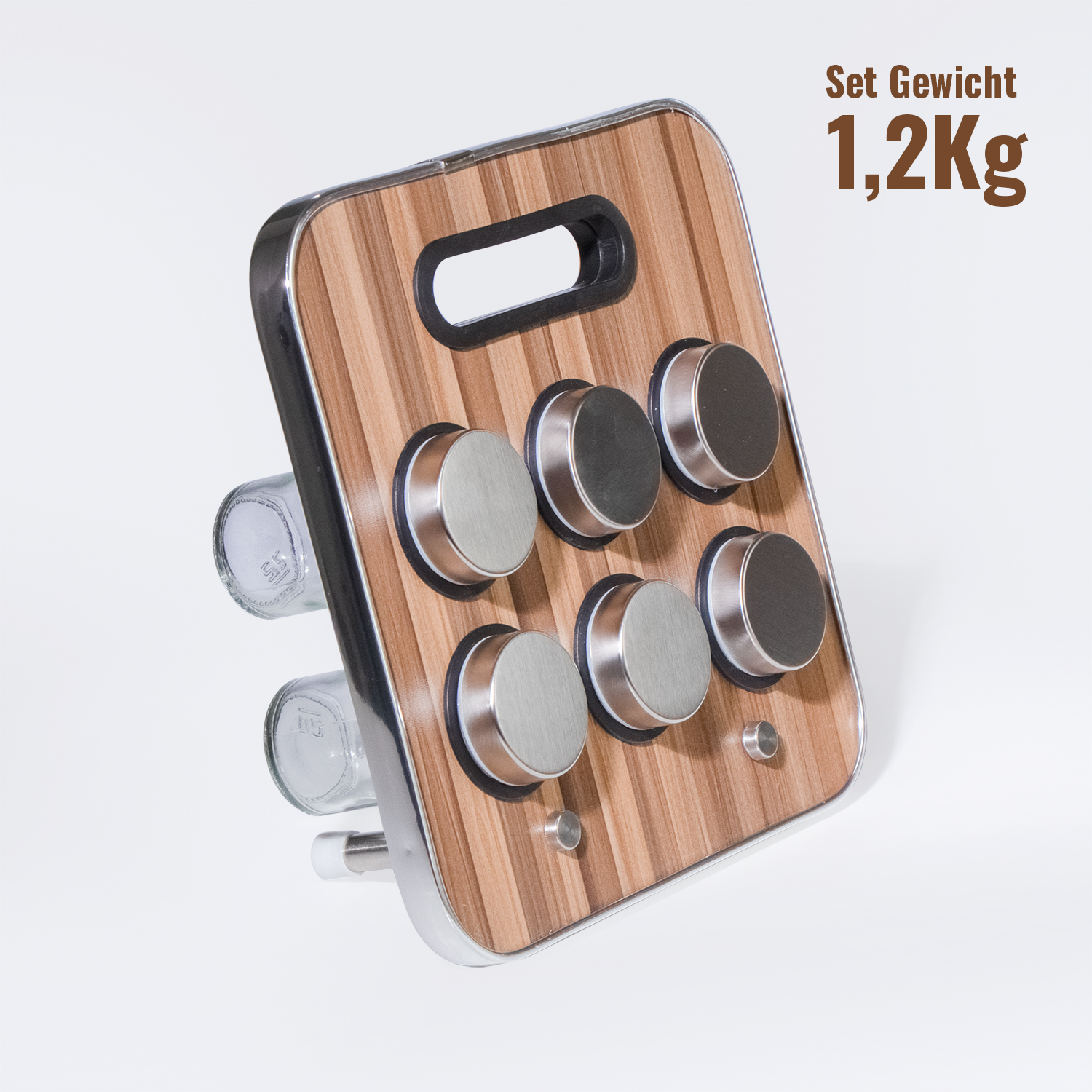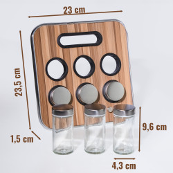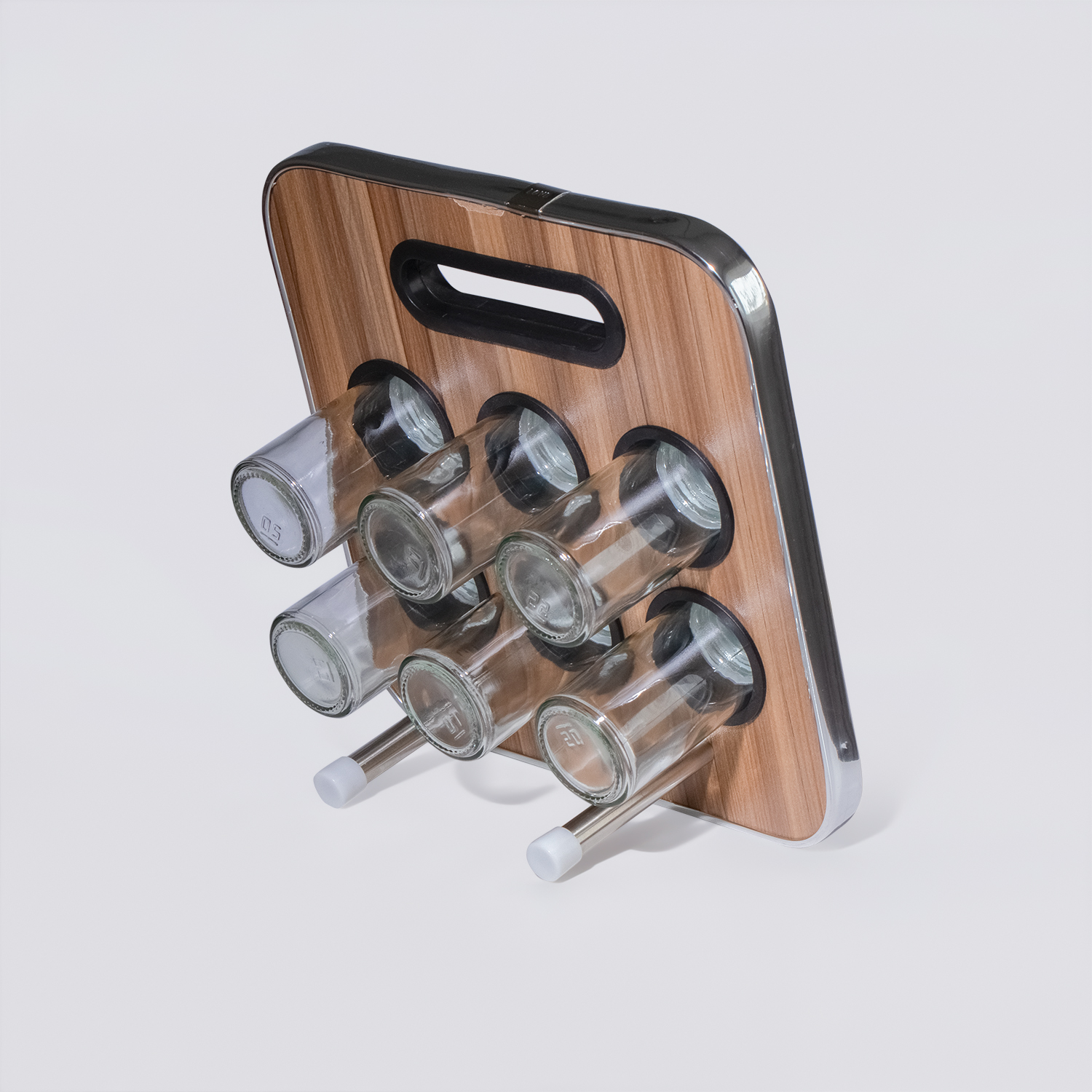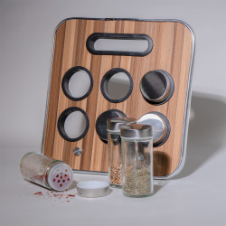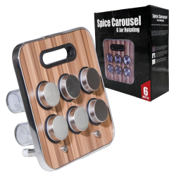 Подставка для специй с 6 баночками, стекло и нержавеющая сталь,корпус под дерево, 23 × 23,5 × 1,5 см898563385 Элегантная подставка для специй с 6 баночками — стильное и практичное решение для кухни.<br> Основание выполнено из нержавеющей стали и пластика с отделкой под дерево, что придаёт изделию современный и тёплый вид.<br> Баночки изготовлены из стекла и нержавеющей стали — они прочные, удобные и гигиеничные.<br> Идеально подходит для хранения специй, трав и приправ на кухне.<br> <br> Материал подставки: нержавеющая сталь + пластик (дизайн под дерево)<br> Материал баночек: стекло и нержавеющая сталь<br> Комплектация: подставка + 6 баночек для специй<br> Размер подставки: 23 × 23,5 × 1,5 см  |