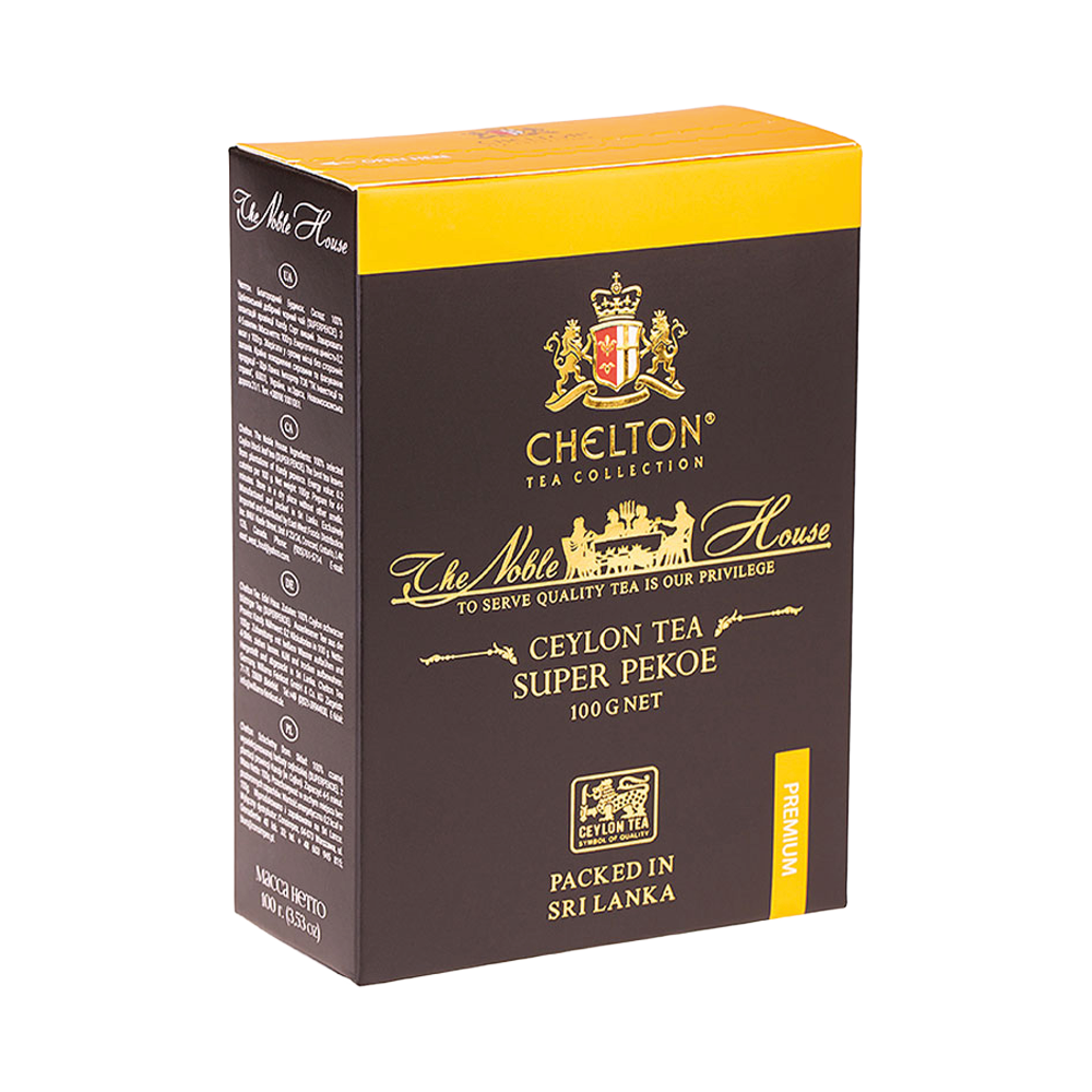 Чай Chelton The Noble House – SUPER PEKOE премиум, рассыпной чёрный чай, 100 г9401-72-100 Высококачественный 100 % цейлонский премиум-чай SUPER PEKOE из провинции Канди на Шри-Ланке.<br><br> Состав:<br> 100 % чёрный цейлонский листовой чай (SUPER PEKOE)<br> 100 г рассыпного чая в ароматозащитном пакете |
