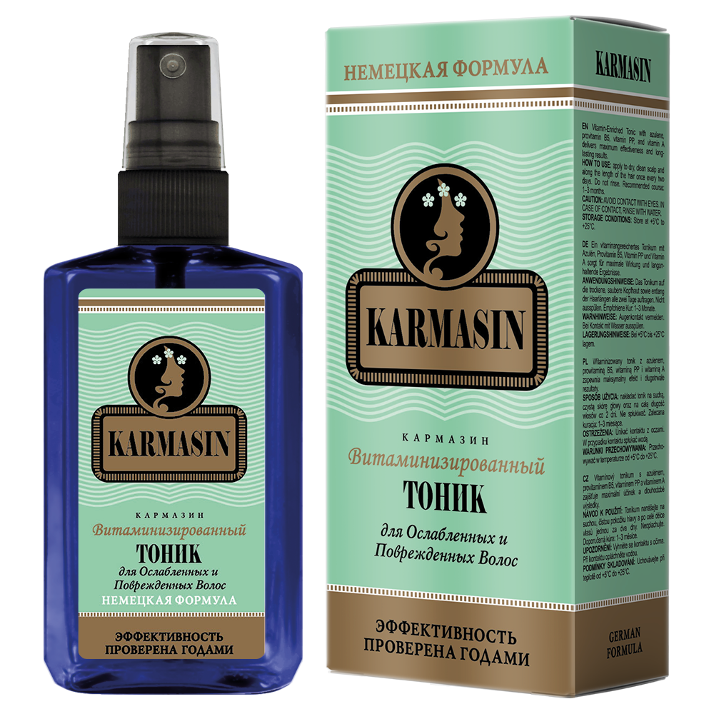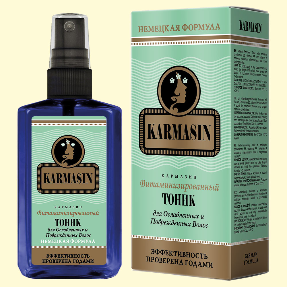 Pharma Group KARMASIN — Тоник для ослабленных и поврежденных волос с витаминами, 100 мл9991-382270139 Средство для ухода за ослабленными и поврежденными волосами, обогащённое активными компонентами. Помогает укрепить волосы, питает их и поддерживает защиту от воздействия внешней среды. Активные компоненты: Азулен (из аптечной ромашки) — успокаивает кожу головы, поддерживает структуру волос и придает ощущение ухоженности. Провитамин B5 — способствует укреплению корней волос. Витамин PP — поддерживает питание волос и улучшает общее состояние волосяных фолликул. Витамин A — поддерживает здоровье структуры волос и защищает их от негативного воздействия окружающей среды. |