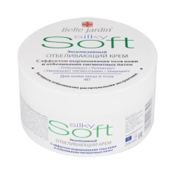 Belle Jardin Крем для лица и тела Отбеливание 4D, 200 мл9991-475103505 EXCLUSIVE 4D Крем для лица и тела – выравнивание тона кожи<br><br> Увлажняет<br> Интенсивно питает<br> Снижает видимость пигментных пятен<br> Защищает кожу от внешних факторов<br><br> Крем способствует выравниванию тона кожи и придаёт лицу свежий, сияющий вид.<br> Содержит растительные экстракты с эффектом осветления.<br><br> Эксклюзивный крем SOFT BRIGHTENING INTENSE от Belle Jardin с шелковистым эффектом обладает лёгкой, мягкой и быстро впитывающейся текстурой.<br> Формула содержит питательные компоненты: масло абрикосовой косточки, масло зародышей риса, масло макадамии, протеины шёлка, витамин E, аллантоин, D-пантенол.<br><br> Крем способствует более ровному тону кожи, делает её свежей и ухоженной благодаря активным компонентам:<br> Экстракт лимона придаёт коже сияние.<br> Экстракт настурции поддерживает ровный тон кожи.<br> Экстракт алоэ интенсивно увлажняет кожу и помогает поддерживать её баланс.<br> Содержит UV-фильтры, которые помогают защищать кожу от воздействия внешних факторов, способствующих появлению пигментных пятен.<br><br> Результат:<br> Ровный, свежий и сияющий тон кожи.<br> Кожа становится шелковистой, гладкой и ухоженной.<br><br> Применение:<br> Нанесите достаточное количество крема на предварительно очищенную кожу лица, шеи и зоны декольте.<br> Равномерно распределите мягкими массажными движениями до полного впитывания.<br> Для оптимального ухода использовать ежедневно утром.<br><br> Поддерживает ровный тон кожи<br> С ухаживающими UV-фильтрами |