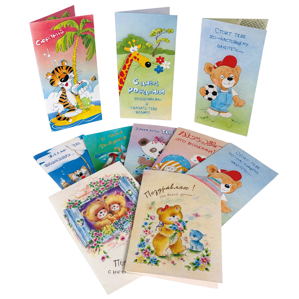 Набор шуточных поздравительных открыток, разные мотивы, 10 шт.Gk01001_40 Набор шуточных поздравительных открыток с яркими и оригинальными иллюстрациями.<br> Подходит для поздравлений, дружеских посланий и создания хорошего настроения.<br> Разные мотивы в наборе.<br> Поставляется комплектом из 10 штук.<br> Дизайны подбираются случайным образом. |