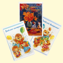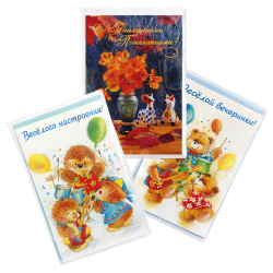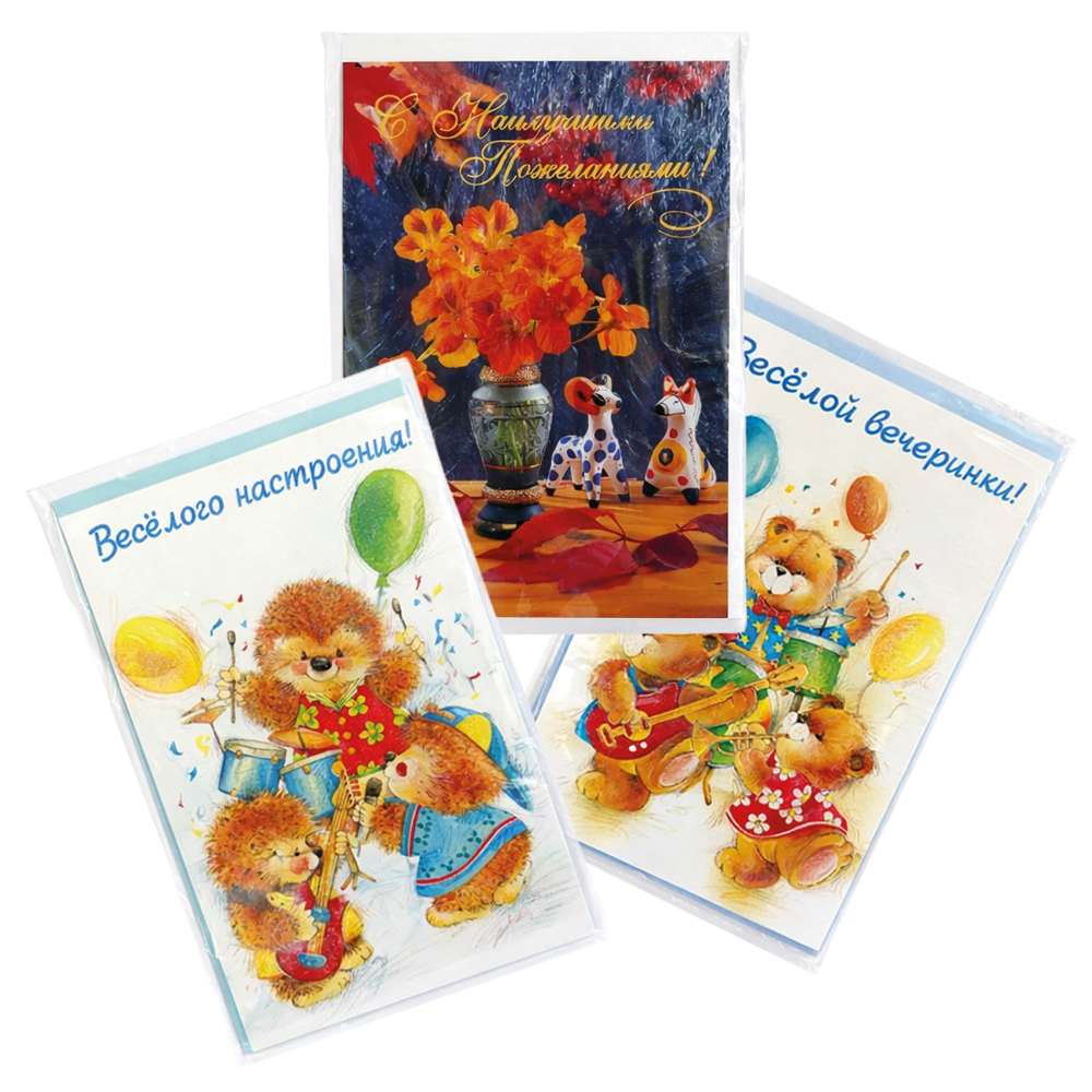 Набор поздравительных открыток с конвертами, разные мотивы, 190 × 120 мм, 3 шт.Gk01001_39 Поздравительная открытка с пожеланием в комплекте с конвертом. Варианты надписей: «Весёлого настроения»; «Весёлой вечеринки»; «С наилучшими пожеланиями». |