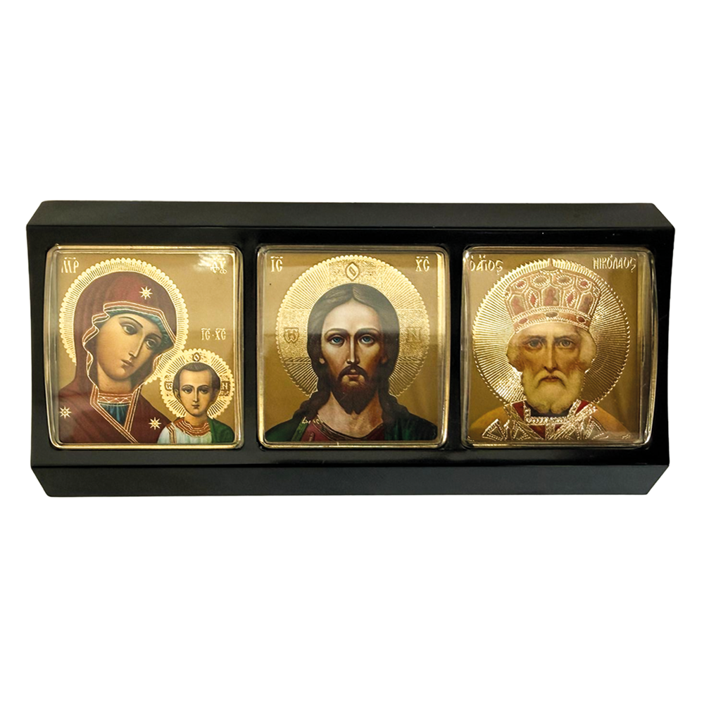 Икона для машины Тройная, 11 x 5,3 см381263024 Икона для машины «Тройная», размер 11 × 5,3 см. Декоративная отделка выполнена из чёрного пластика. Лёгкая и удобная для размещения в салоне автомобиля. Подходит для повседневного использования и создаёт благоговейную атмосферу в дороге. |