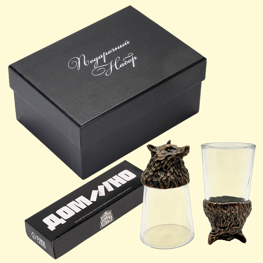 Подарочный набор 3 в 1 – Волк бронзовый, рюмки-перевёртыши 2 шт. по 30 мл, домино898587303 Подарочный набор 3 в 1 «Волк бронзовый» — стильный и оригинальный подарок для любого праздника.<br> Рюмки-перевёртыши с детализированной головой волка в бронзовом цвете придают набору выразительный характер и привлекают внимание.<br> В наборе 2 рюмки объёмом по 30 мл и домино для приятного времяпрепровождения.<br> Идеально подходит как для дружеских встреч, так и для праздничных мероприятий.<br> Сочетание металла и стекла обеспечивает прочность, долговечность и эффектный внешний вид.<br> Рюмки удобны в использовании и легко очищаются.<br> <br> Набор станет отличным подарком на Новый год, день рождения, юбилей или другой праздник для друзей, коллег и близких.<br> Добавьте оригинальности и атмосферы в любое застолье!<br> |