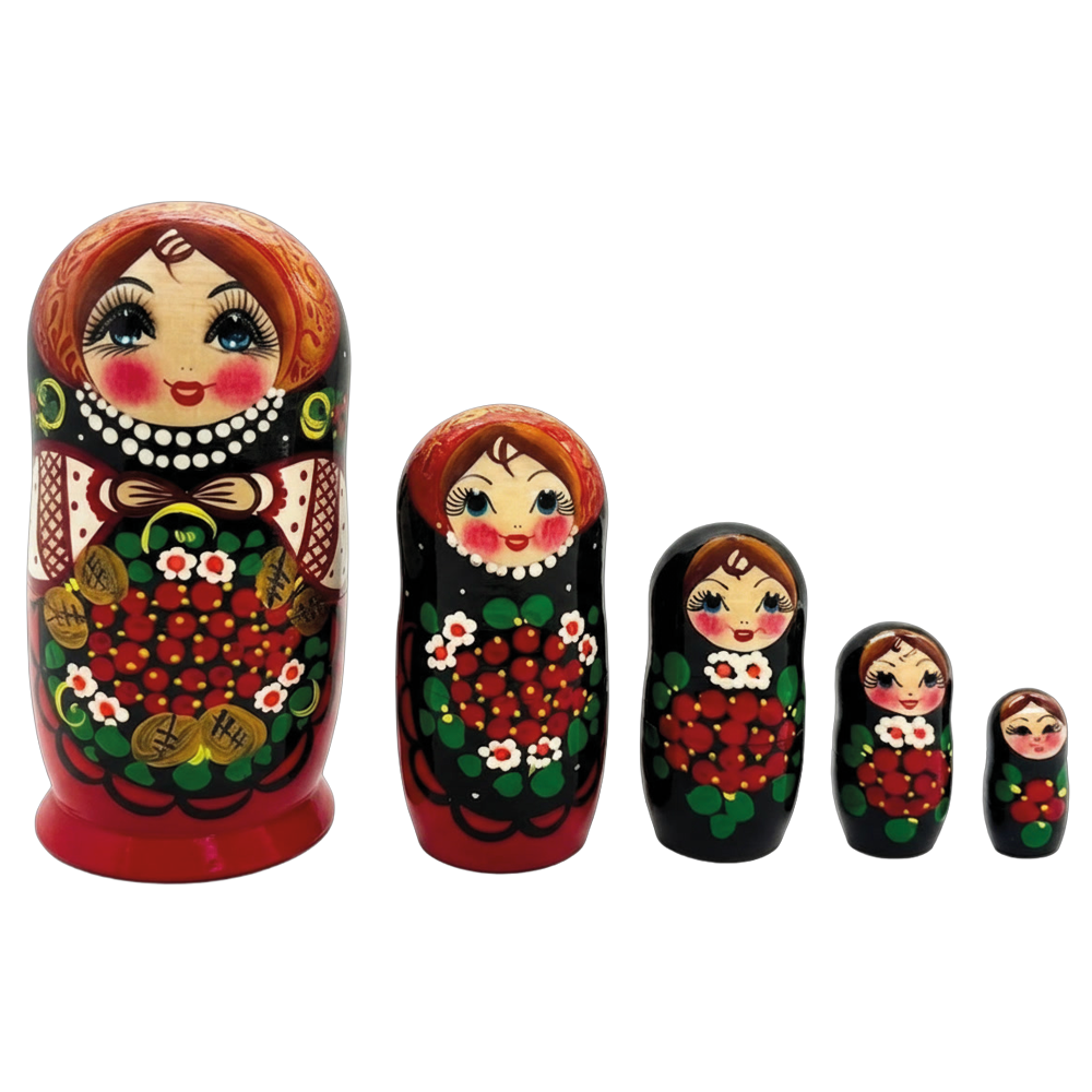 Матрёшка Рябина M5, 18 см0707512-3 Матрёшка «Рябина» M5 — традиционная деревянная игрушка с ярким и узнаваемым дизайном.<br> Роспись с мотивами рябины придаёт изделию особую декоративную выразительность.<br><br> Изготовлена из дерева и аккуратно расписана.<br> Состоит из нескольких вкладывающихся фигурок.<br> Высота: 18 см.<br><br> Подходит в качестве сувенира, подарка или элемента интерьера.<br> Отличный выбор для ценителей народного искусства и традиций.<br><br> |