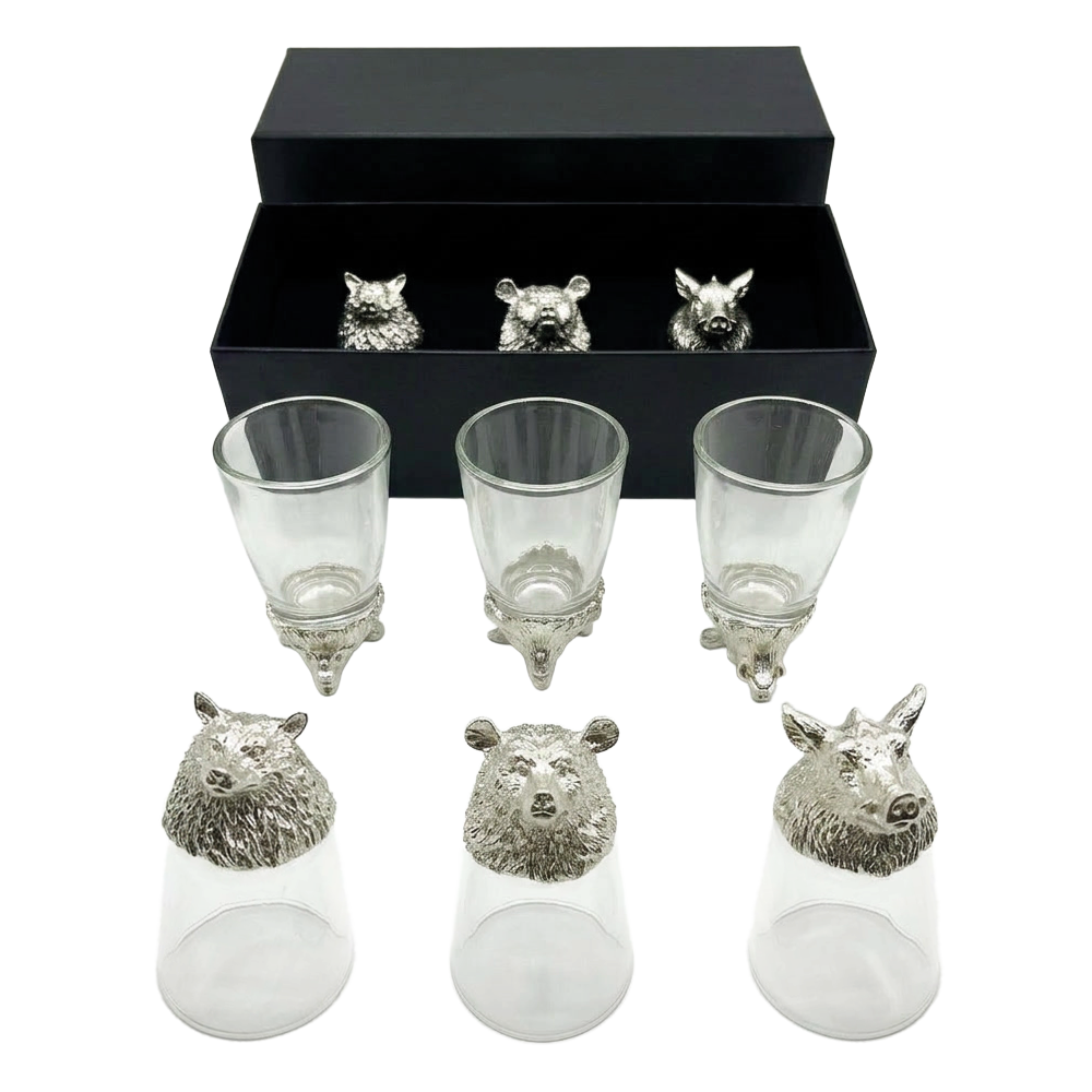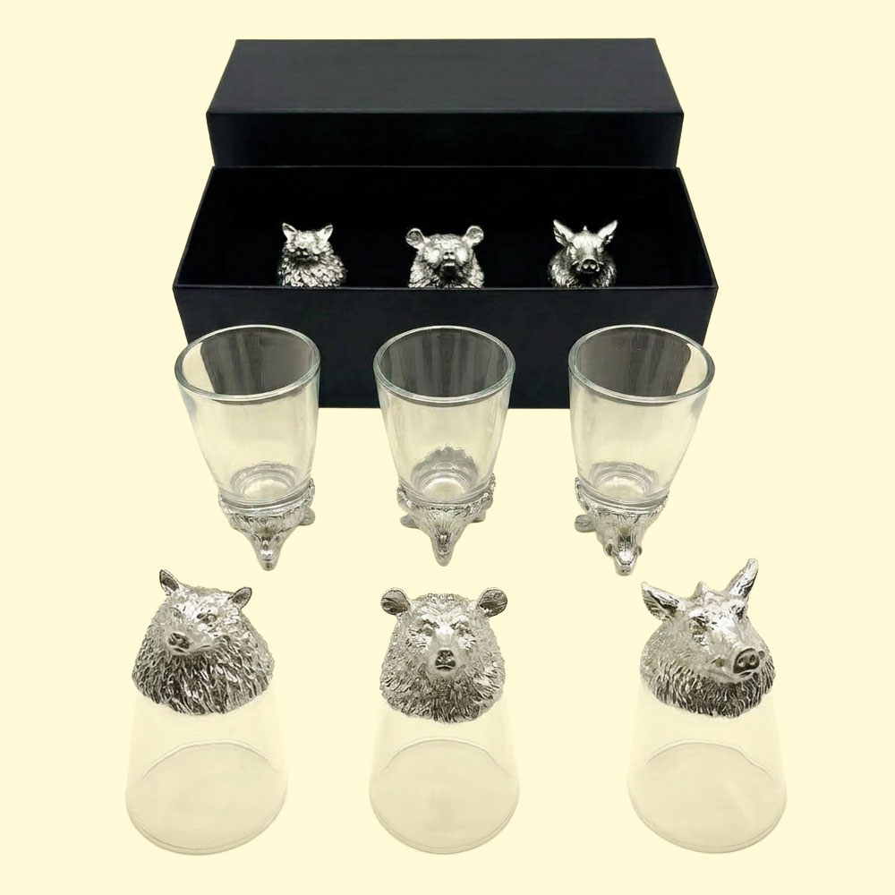 Подарочный набор Дикие животные, рюмки-перевёртыши 3 шт. по 30 мл (волк, кабан, медведь), серебро898520326 Подарочный набор Дикие животные — стильный и оригинальный подарок для любого праздника. Рюмки-перевёртыши с детализированными головами волка, кабана и медведя в серебристом цвете придают набору современный и эффектный внешний вид. В наборе 3 рюмки объёмом по 30 мл, которые создают особую атмосферу за столом. Идеально подходит для дружеских встреч, застолий и праздничных мероприятий. Сочетание стекла и металла обеспечивает прочность, долговечность и удобство использования. Рюмки устойчивы и легко очищаются. Набор станет отличным подарком на Новый год, день рождения, юбилей или другой праздник для друзей, коллег и близких. Добавьте оригинальности и атмосферы в любое застолье! |