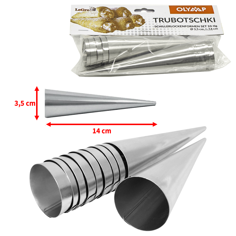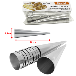 Форма для выпечки "Трубочки", набор 10 шт., 14 см, Д-3,5 см,нержавейка89660001 В коробке: 12 шт. Суперцена+Суперкачество! Набор состоит из 10 конических формочек. Они очень просты в использовании: достаточно небольшой кусок теста обернуть вокруг стальной формы и поместить в духовку. Когда слоеные трубочки будут готовы, остудите их и наполните любой сладкой начинкой на ваш выбор. Самые вкусные пирожные получаются с заварным кремом или взбитыми сливками. |
